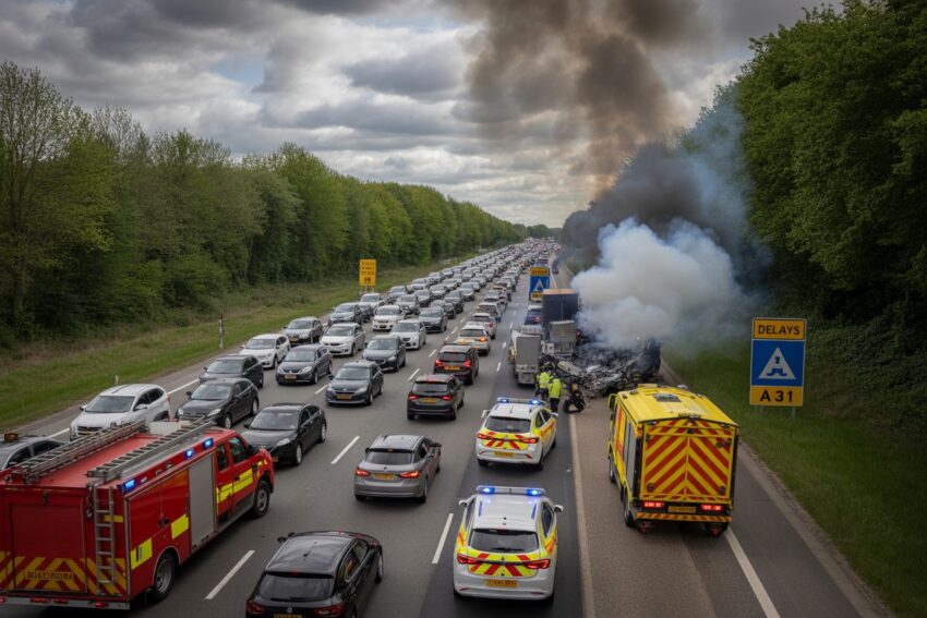 UK Drivers Face Nightmare Delays on A31 in Hampshire After Devastating Crash and Vehicle Fire – Forty Minute Waits Ahead